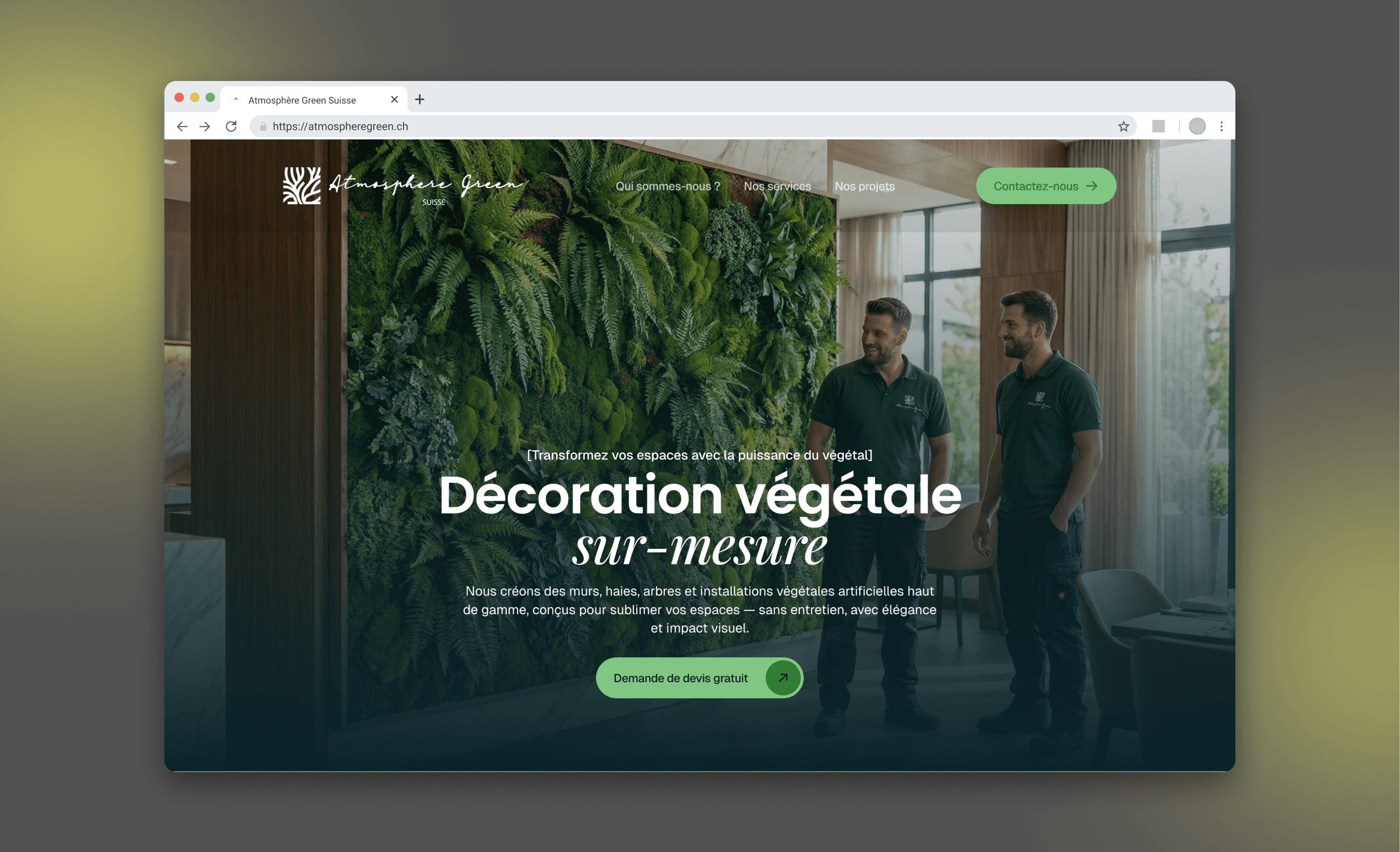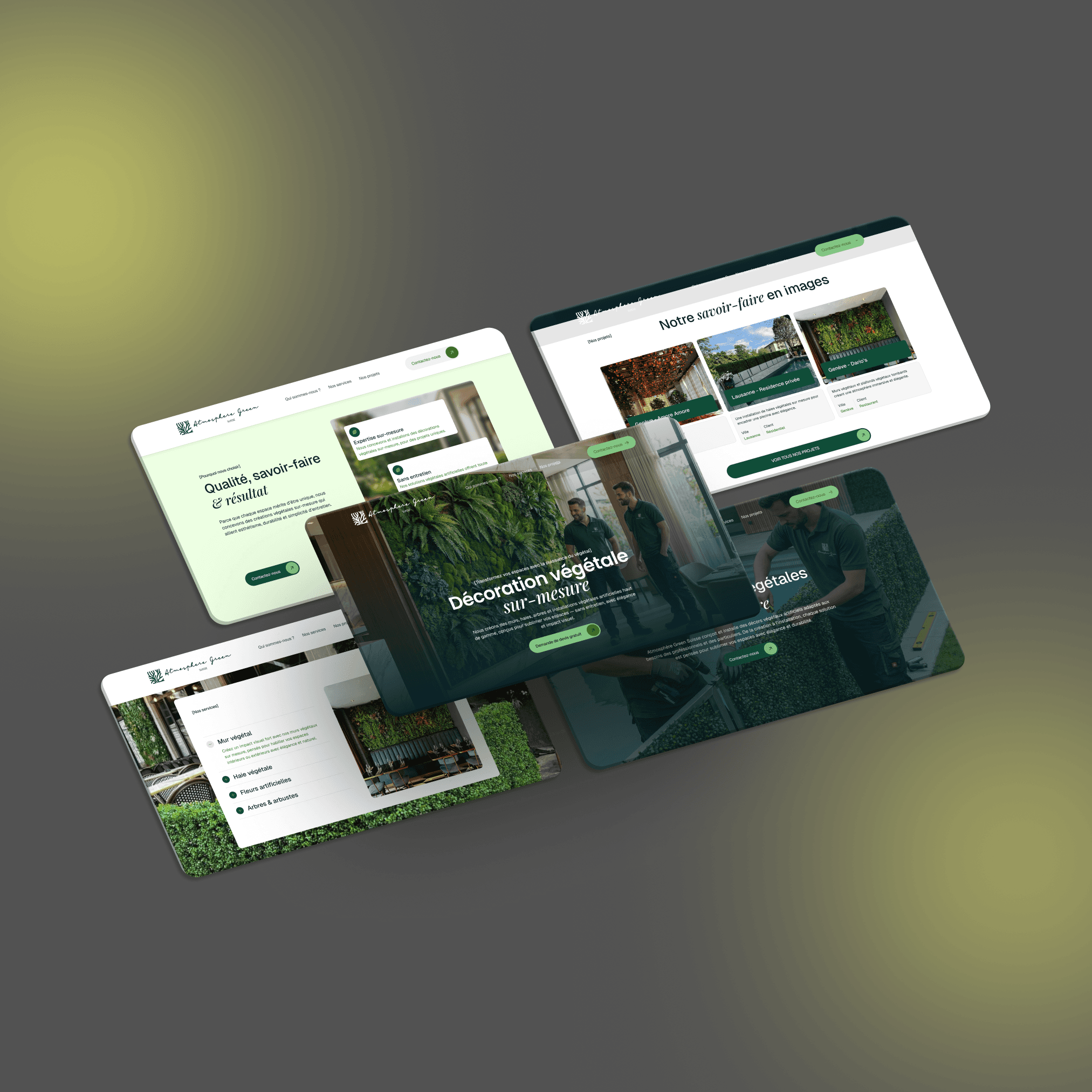 Atmosphère Green est une entreprise basée à Genève spécialisée dans la fourniture et l’installation de végétation artificielle haut de gamme pour particuliers et professionnels, transformant intérieurs et extérieurs en espaces verts sans entretien.