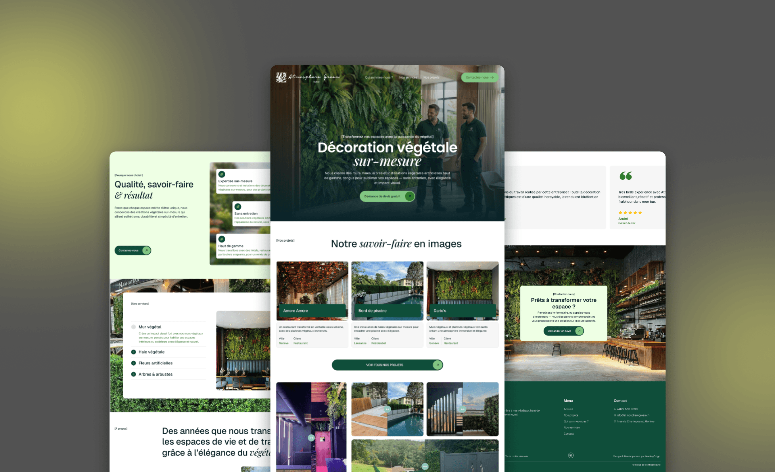 Le site fournit aujourd’hui à Atmosphère Green une vitrine digitale claire et inspirante, valorisant leur expertise en végétalisation artificielle et facilitant les prises de contact pour des projets personnalisés.