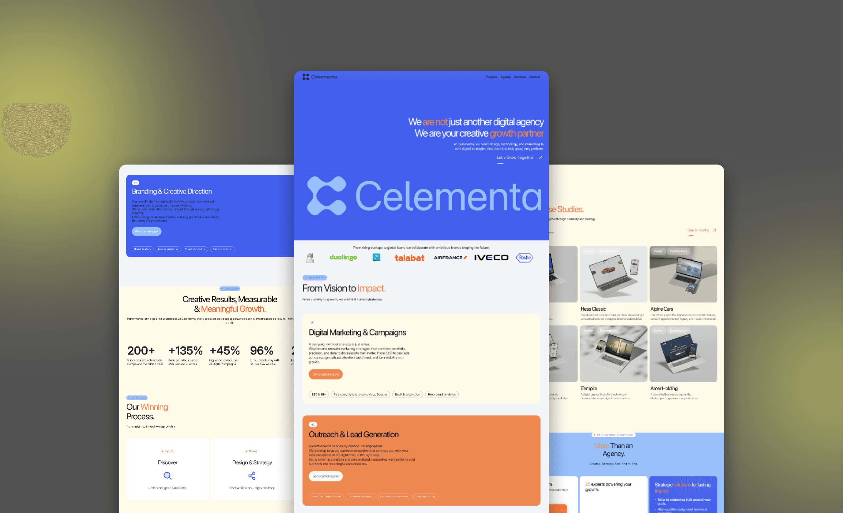 Celementa est une agence digitale spécialisée dans la croissance en ligne des marques, mêlant stratégie marketing, design, campagnes et performance web pour ses clients internationaux.